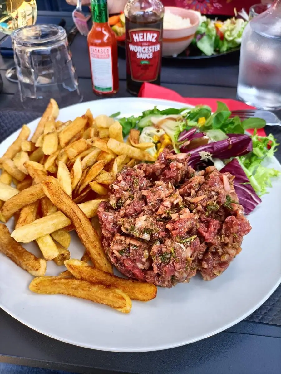À la belle saison, déguster nos huitres de l’Aven, nos palourdes roses des Glénan farcit au beurre persillé « maison », nos belles salades confectionnées avec des produits frais et de saison, nos viandes à la plancha ou tartare de bœuf, notre beau poisson en provenance de la criée de CONCARNEAU et nos moules ( juillet et août).